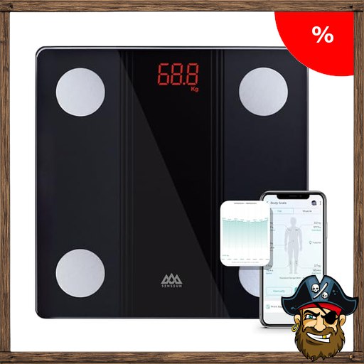 SENSSUN Körperfettwaage Digital Personenwaagen,Waage Personen mit APP, Smart Pira~te-Deals Waage Bluetooth Körperanalysewaage mit Körperzusammensetzungsfunktion,150KG/330LB,26 * 26CM,LED-Display(Schwarz)