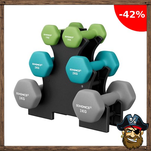 SONGMICS Kurzhantel Set, Hexagon, mit Hantelständer, 2 x 1 kg, 2 x 2 kg, 2 x 3 kg, mattes Finish, Neopren-Beschichtung, Krafttraining, zu Hause, limettengrün, aquamarin und hellgrau SYL612GN Pirate-De~als