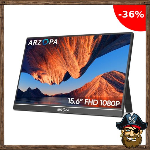 ARZOPA Tragbarer Monitor, 15,6″ 1920×1080 FHD IPS Portabler Monitor für Laptop mit Einer Pirate-D$eals Stütze, Ultra-Dünner Zweitbildschirm für Laptop/PC/Mac/PS3/4/5/Xbox – USB C & HDMI Anschluss – A1