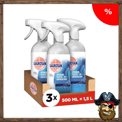 Sagrotan Hygiene-Textilerfrischer Frische Pirate-Dea#ls Wäsche – Entfernt festsitzende Gerüche & geruchsbildende Bakterien – Für Kleidung & Wohntextilien – 3 x 500 ml