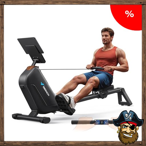 MERACH Rudergerät für Zuhause Klappbar, Automatische Widerstandseinstellun, Verbesserte 130cm Pirate-Deal:s Führungsschienen Sorgen für Mehr Bewegungsfreiheit, Leises Rudermaschine mit Exklusiver APP(R15B1)