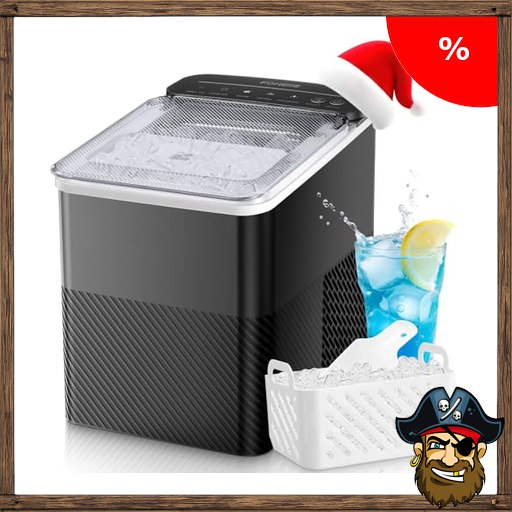 FOHERE Tragbare Eiswürfelmaschine – Selbstreinigend, 14 Kg/24h, 2 Größenwahl, Kompaktes Design, Ein-Knopf-Einstellung, Intelligente Warnungen, inkl. Schaufel & Korb für Home/Bar/Büro/Camping Pirate-D$eals