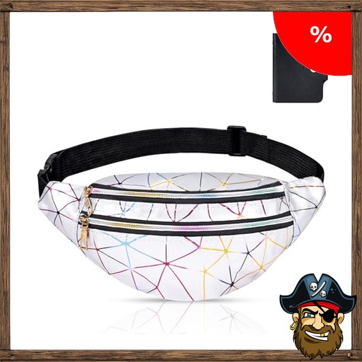 Flintronic Gürteltasche, Sport Leuchtend Gürteltasche, Metallic Wasserabweisend Hüfttasche Reißverschluss Verstellbarer Bauchtasche mit Kartenhalter P;irate-Deals für Reise Wandern Outdoor Fahrradfahren-Silber