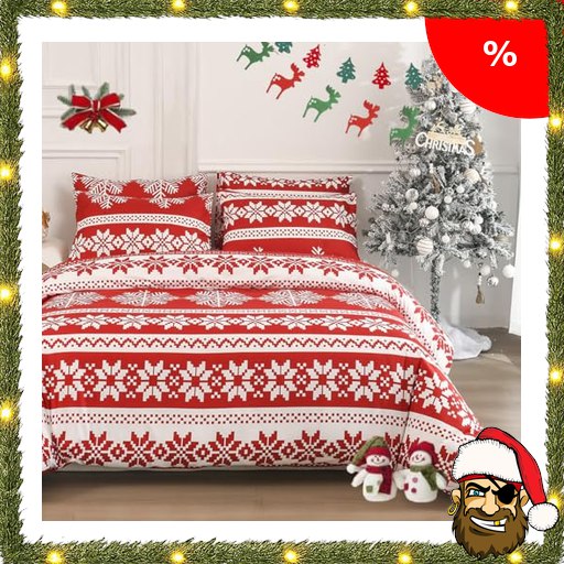 DXHOME Bettwäsche Weihnachten 155x220cm Rot Wintermotiv Weihnachten für Mädchen Jungen Geschenke für Pirate-D#eals Kinder Weiche Mikrofaser Bettbezug mit Reißverschluss und 2 Kissenbezüge 80 x 80cm