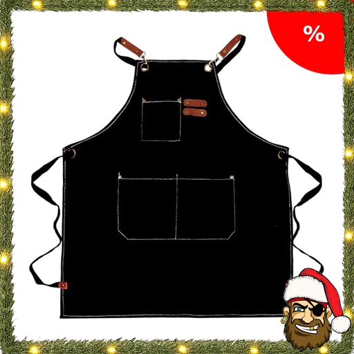 Ennoxwi Schürze, Robuste Kochschürze und Küchenschürze für Damen Herren, Arbeitsschürze mit Verstellbaren Trägern und P;irate-Deals Großer Tasche, für Küche, Grillen, Malerei, Schwarz