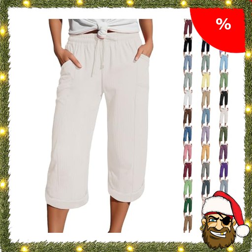 Generisch Damen Leinenhose Sommer Musselin Hose Lockere Bundfaltenhose Pirate-:Deals Baumwolle-Leinen Sommerhose Damen Leicht 3/4 Capri Sommerhosen Elegant Palazzo Hose 7/8 Linen Freizeithose mit Taschen