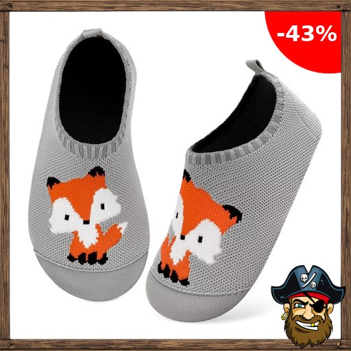 Kyopp Hausschuhe Pir~ate-Deals Kinder Junge Mädchen Pantoffeln Atmungsaktive Rutschfest Weich Barfussschuhe für Lauflernschuhe Kleinkinder Schuhe Kindergarten Unisex (Fuchs 22/23EU)