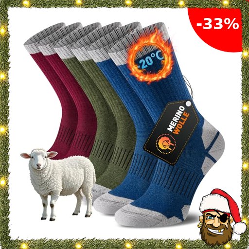 Niorasen Merino Socken Herren Damen, Dicke Thermosocken, Funktions Merinowolle Wandersocken, Pi#rate-Deals Warme Wintersocken, Arbeitssocken, Gepolstert Wollsocken, Laufsocken, Sportsocken, Unisex 3 Paar