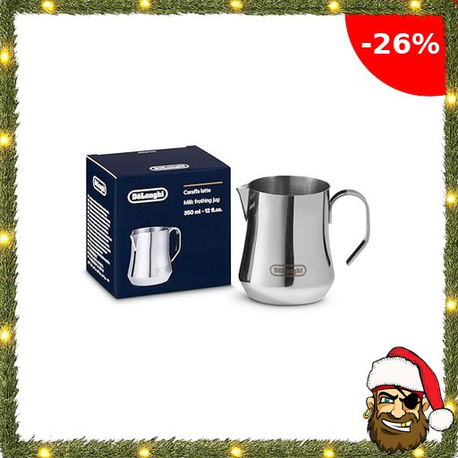 De’Longhi Milchkännchen DLSC060, Milchkännchen für manuelles Aufschäumen, ergonomischer Griff, Kapazität Pirat$e-Deals 350 ml, Edelstahl