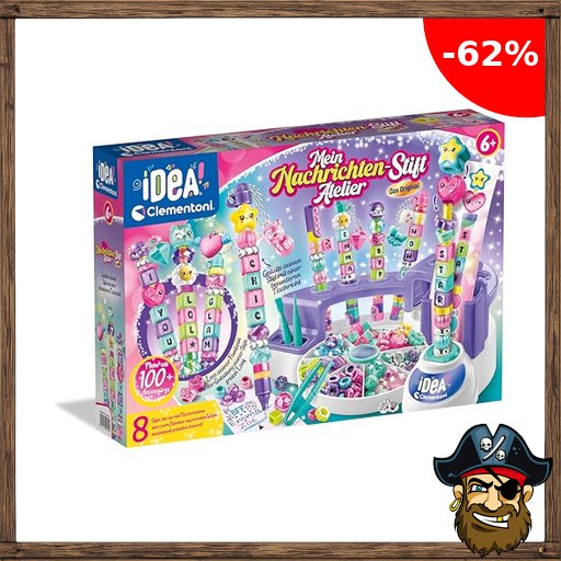 Clementoni Idea Nachrichten-Stift Atelier – Stift Bastelset mit Buchstaben, Perlen, Aufklebern & mehr – Personalisierter Stift, Pir:ate-Deals Geschenk-Set für Kinder ab 6 Jahren, 59455