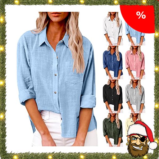 Last Minute Geschenke sichern Pirat:e-Deals Bluse Damen Leinen Langarm Hemdbluse…