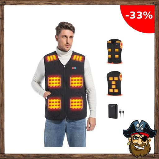 Rrtizan Beheizte Weste für Damen und Herren mit Powerbank, Heizweste mit 3 Pirate-D:eals Temperaturstufen, ärmellose USB elektrische Beheizte Jacke, waschbarer beheizter Körperwärmer für Outdoor, Camping