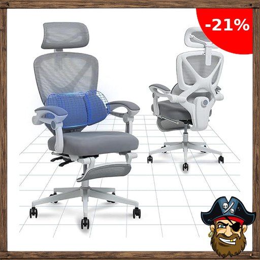FLEXISPOT Ergonomischer Bürostuhl, X-förmiger Schreibtischstuhl mit 135°-Neigung, Gekoppelte Armlehnen mit zonenweise Pirat!e-Deals Einstellbarer Lendenstütze, Drehstuhl mit Fußstütze, 3D-Kopfstütze, Weiß-Grau