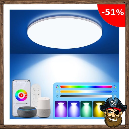 KingMile 24W LED Pirate-D~eals Deckenleuchte,Smart LED Deckenlampe mit Fernbedie…