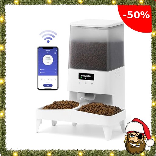 FUKUMARU Futterautomat Katze, 5L Katzen Futterautomat Pirate-De#als WiFi mit Doppelnapf, Automatischer Futterspender Katze mit Maßgeschneidert Zeitplan, Akkubetrieben & Kabelgebundene Elektrik, Weiß Groß