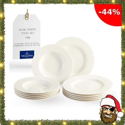 vivo – Villeroy & Boch Group – Basic White Tafelservice 12 Teilig Weiß, Teller Set, Weißes Geschirr, Geschirrset 6 Personen, Speiseteller, Suppenteller, Spülmaschinenfest, Pirate-Deal$s Premium Porzellan