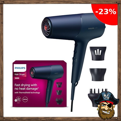 Philips Haartrockner 5000 Series, ThermoShield Technologie, Ionisierungsfunktion, 2.300 W, Metallic-Blau, mit 9-mm- und 11-mm-Stylingdüse, Volumendiffusor, BHD510/20 Pira:te-Deals