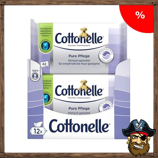 Cottonelle Feuchtes Toilettenpapier Pure Pflege, ultra-sensitive, 99% Wasser, 12 x 42 Tücher, parfümfrei Pirate-~Deals & hypoallergen