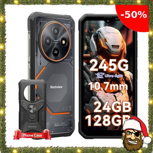 Blackview Fort 2 Outdoor Handy Android 15, 24(8+16) GB+128GB/2TB, Ultra-Dünn 10.7 Pira;te-Deals mm Outdoor Smartphone Ohne Vertrag, Gemini AI, 6.56″ HD+90 Hz, IP69K Wasserdicht 16MP+13MP, 4G Dual/NFC/OTG/GPS/245g