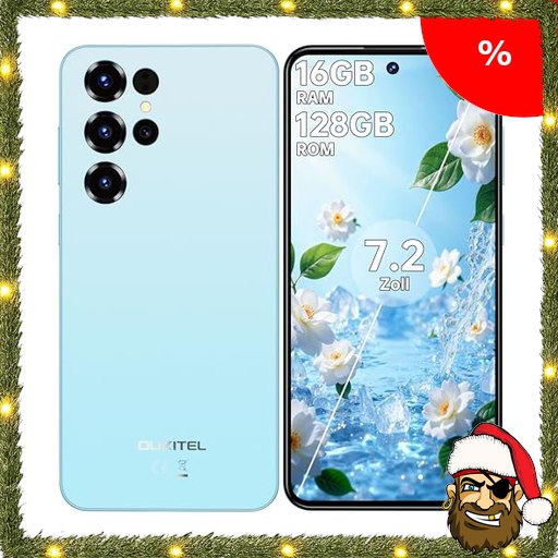 Beschreibung: OUKITEL C68 Pir$ate-Deals Smartphone Ohne Vertrag Android 15-7,2 Zoll Display Handy Günstig 16GB+128GB /1TB, 6000mAh Akku Handy Ohne Vertrag, 64MP+8MP Kamera, Dual SIM Face ID/Fingerabdruck/OTG/GPS, Blau