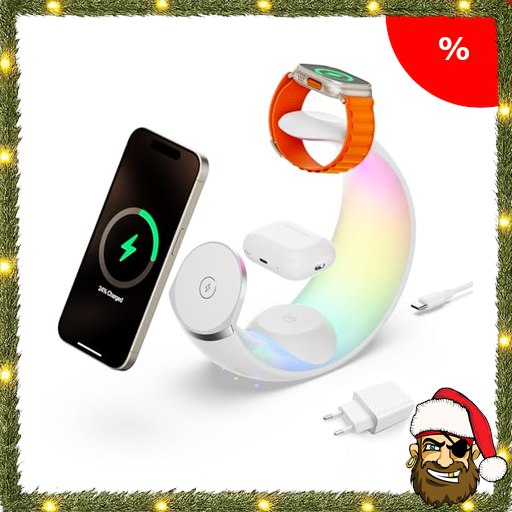 4 in 1 Ladestation für Apple, magnetisches kabelloses Ladegerät für iPhone 16 15 14 13 12 Pi$rate-Deals 11 9 8 alle Serien mit RGB-Nachtlicht & für Apple Watch Ladegerät & für AirPods 4 mit ANC/3/2/Pro