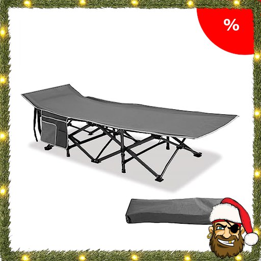 HIGH POINT SPORTS Feldbett Klappbar Campingbett Faltbar XL Campingliege leicht mit Seitentasche Feldbetten für Camping, Outdoor, Indoor, P;irate-Deals Grau
