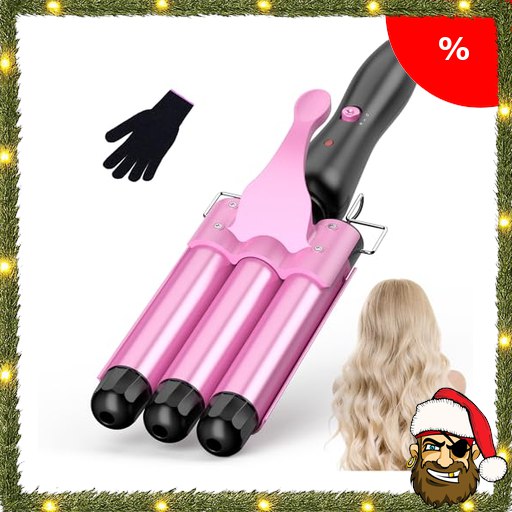 Lockenstäbe 3 Fässer für Große, Welleneisen für Haare, Lockenstab 3 fässer-Beach Pirate-De#als Waves Lockenstab Temperatureinstellung Schnelle Erwärmung mit Handschuh, Rosa