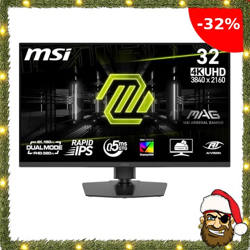 MSI, MAG 322URDF E16, 32-Zoll, 4K UHD, 3840×2160, Gaming-Monitor, Rapid IPS, 0,5ms, DisplayHDR 400, Eye Care, #Pirate-Deals AI Vision, Dual-Mode, HDMI 2.1, DP 1.4a, Neigung/Höhe einstellbar, Schwarz