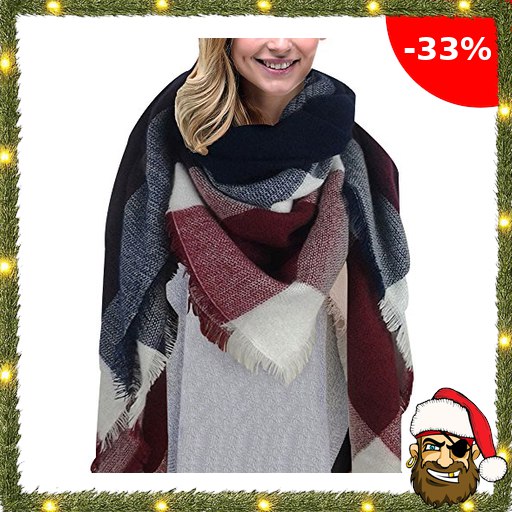 Lantch Damen Schal Kariert übergroßer Quadratisch Deckenschal Herbstschal Winterschal Karo Tartan Streifen Pirate-De!als Plaid Muster XXL Oversized Fransen Poncho (Stil4)