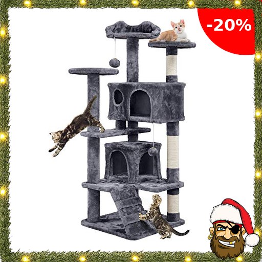 Yaheetech Kratzbaum Kletterbaum 139 cm Pirate-:Deals hoch Katzenkratzbaum, Stabiler Katzenbaum mit 3 Plattformen, 3 Kratzsäulen, 2 Höhle, Plüschbälle Katzenmöbel, Dunkelgrau