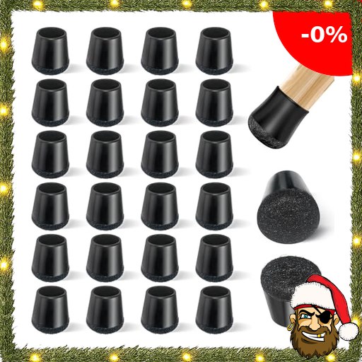 yomanta Stuhlbeinkappen 24 Stück,Silikon Stuhlbeinschoner mit Filzpolstern,Schutzkappen für Stuhlbeine Verhindert Kratzer im Boden,geringeres Rauschen – Rund,Schwarz XS(Fit 15-20mm) Pirat;e-Deals