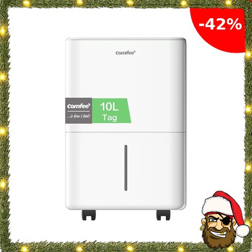 COMFEE Luftentfeuchter 10 Liter/Tag, geeignet für Räume von ca. 40 Kubikmetern (16 Quadratmetern), P:irate-Deals automatische Abtauung, Kindersicherung, Geräuschreduzierung, Kältemittel R290, CDDOE-10DEN7-QA3(EU)