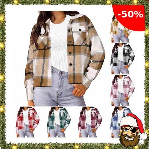 Damen Bluse Kariert Hemdjacke Pirat#e-Deals Flanellhemd mit Knöpfe und Brusttasc…