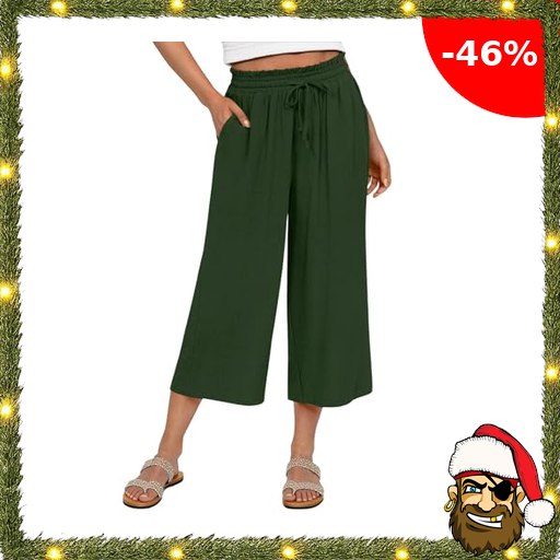 Jaibrmey Damen-Caprihose Aus Baumwolle und Leinen mit Pirat~e-Deals Hohem Bund Elastischem Kordelzug LäSsige Hose mit Weitem Bein Leicht Atmungsaktiv Perfekt FüR SommerausflüGe und Strandbekleidung
