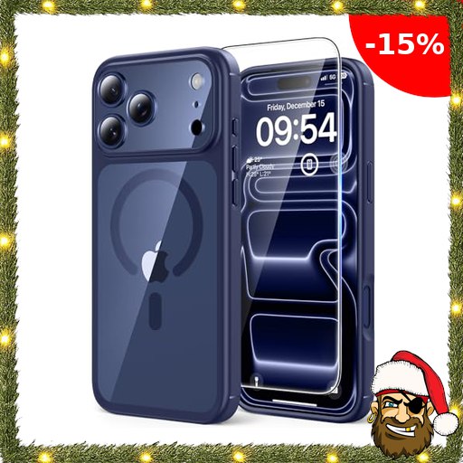 TAURI für iPhone Pirate-Dea;ls 17 Pro Hülle 6,3″ mit Panzer Schutz Glas Folie, Kompatibel mit MagSafe, Vollständiger Kameraschutz, Stoßfest Militärstandard Magnetisch Handyhülle – Marineblau
