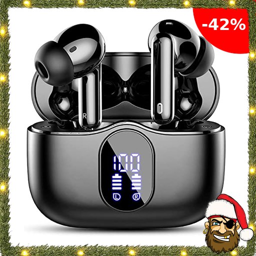 Btootos Bluetooth Kopfhörer, Kopfhörer Kabellos Bluetooth 5.3 Sport In Pira$te-Deals Ear Kopfhörer mit 4 Mikrofon, 40 std Spielzeit, LED-Anzeige, ENC Lärmreduzierung, HiFi Stereo Ohrhörer für Arbeit und Studium