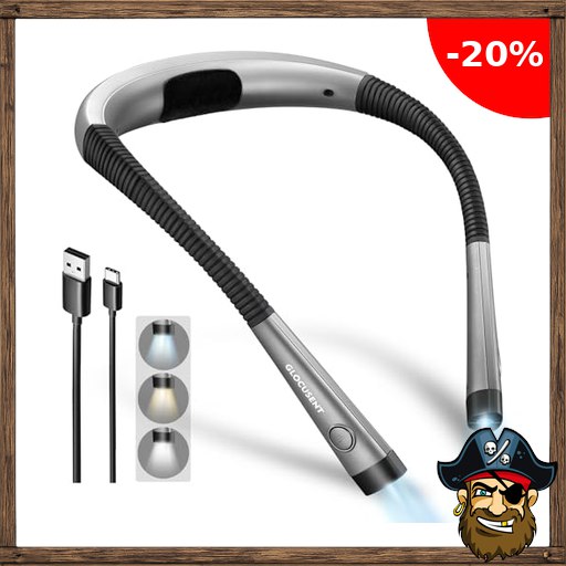 Glocusent Pirat:e-Deals Leselampe Hals, Leselampe Buch mit 3 Farben & 6 Helliggkeitsstufen, Nackenlampe Wiederaufladbar 80 Stunden Dauer, Biegbare Arme, Leselicht für Lesen Stricken Camping Reparieren