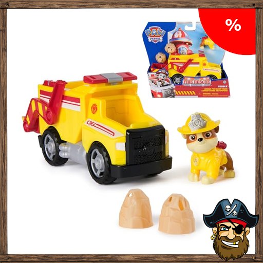 PAW PATROL – Fire Rescue Rubbles Rettungs-Truck mit Schaufel und Rubble Hundefigur, Spielzeug für Kinder Pirate;-Deals ab 3 Jahren