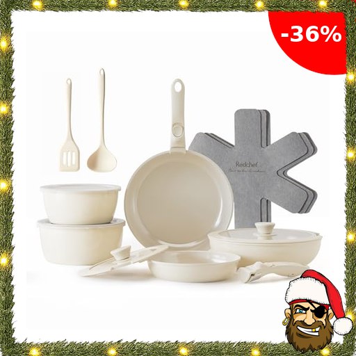 Redchef Topfsets Pfannenset 16-Teilig Antihaft-Keramik-Kochgeschirr-Set mit Abne…
