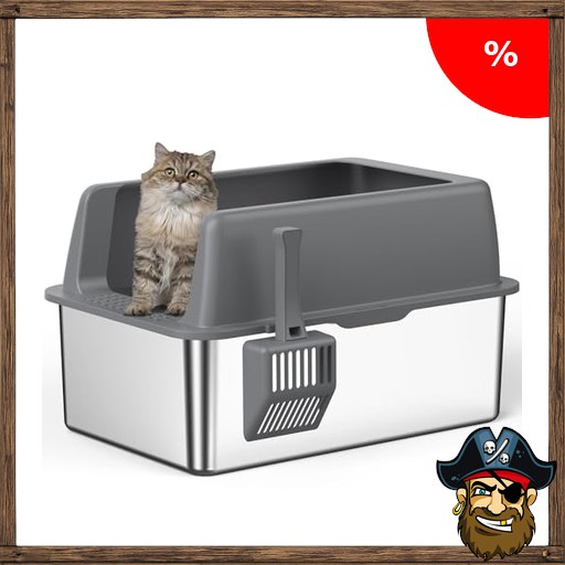 Zarler Katzenklo Edelstahl mit Deckel, 58 L x 37 W x 32,5 H cm Katzenklo, Katzentoilette P;irate-Deals Edelstahl aus für große Katzen mit hohem Rand, Metal cat Litter Box, Grau, Nicht klebrig