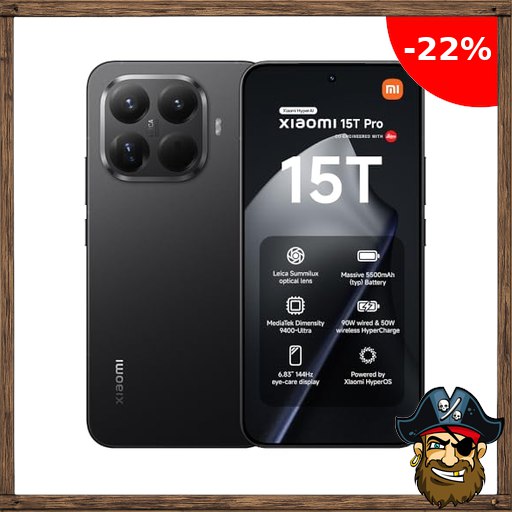 XIAOMI 15T Pro, Smartphone 12+512GB, 6,83″ 144Hz augenschonendes Display, MediaTek Dimensity 9400+, 50MP Leica 5X Pirate-D!eals Pro Teleobjektiv, 5500mAh, Schwarz, 2 Jahre Garantie