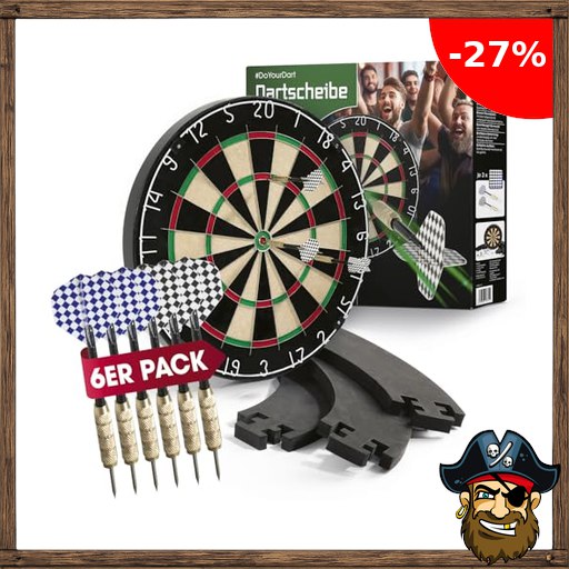 #DoYourDart Dartscheibe | 6 Dartpfeile – Steeldart inkl. Flight | Dart Komplett-Set | Pirate$-Deals Sisal Dartscheibe mit Dart-Surround | Dartboard – selbstschließende brasilianische Sisalfasern