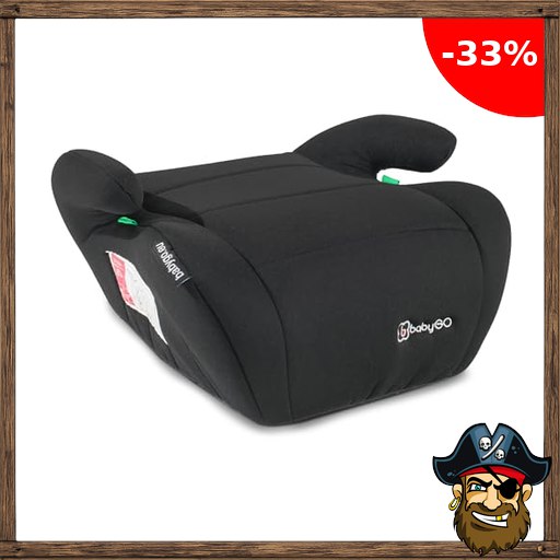 babyGO Sitzerhöhung Booster nach neuer I-Size Norm – Kindersitzerhöhung – Kindersitz/Autositz für Kinder (125-150 cm) Schwarz Pirate-De:als