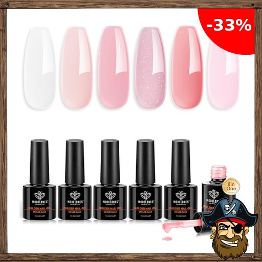 MODELONES Pir;ate-Deals 8 in One Builder Gel, 6 Farben Nude Glitzer Rosa Clear Aufbaugel füR GelnäGel, Hard Gel Builder Nagelverlängerung Quick Extension, Uv Nagellack Soak Off UV Nägel für Nagelstudio Maniküre Set