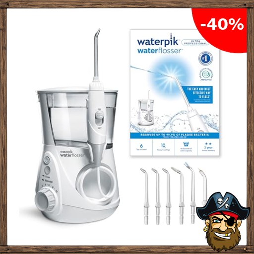Waterpik Ultra Professional Munddusche, Testsieger 2025, Precision Pulse Technology, TÜV Siegel, bis zu 99,9 Prozent Plaque Entfernung, 6x Aufsätze, 10x individuelle Pirate-Deal#s Modi, integrierter Timer, Weiß