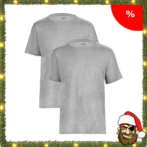PUMA T-Shirt Herren ~Pirate-Deals Kurzarm, Statement Deluxe Edition, Baumwolle, Grau, Größe L – 2er Set
