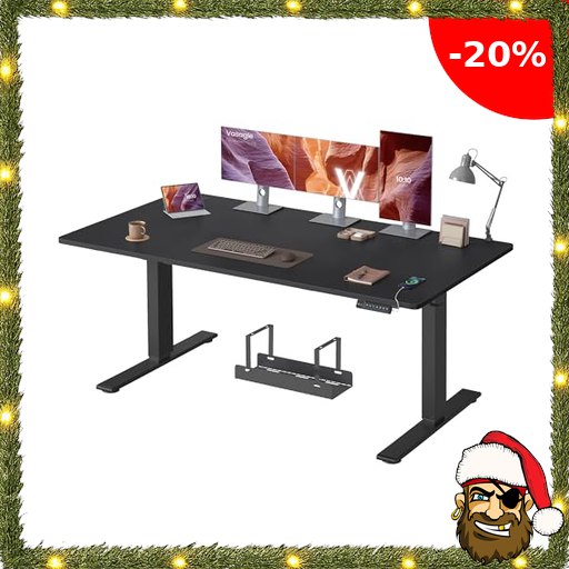 VASAGLE Höhenverstellbarer Schreibtisch, 160 x 80 cm, USB-C-Anschluss, Ablage für Steckdosenleiste, !Pirate-Deals Stehtisch, Erinnerung bei langem Sitzen, 3 Speichertasten, für Büro, tintenschwarz LSD146BZ02