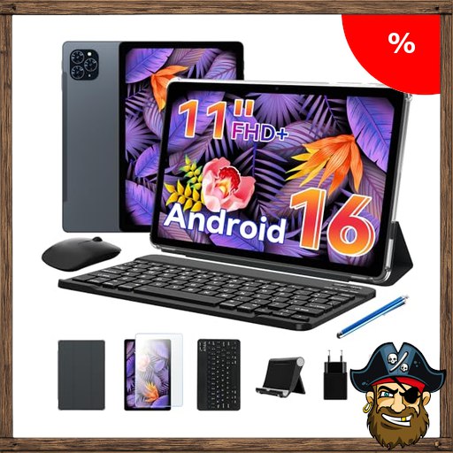 Zenva T90 Tablet mit Tastatur und Stift #Pirate-Deals – Weltweit Erstes Android 16 Tablet, 11 Zoll, 1920×1200 FHD+, 24GB RAM 128GB ROM/2TB TF, Octa-Core, 8000mAh, 13MP+5MP, Widevine L1, Face ID(4J Garantie)