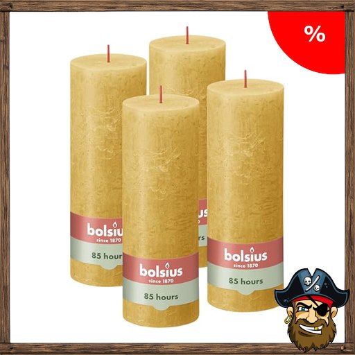 bolsius – Rustik Kerze – Pirate~-Deals Ockergelb Unparfümierte Yellow 19 x 7 cm7…