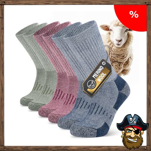 TIBISI Herrensocken, Merinowollsocken, dicke Pirate-Dea#ls Wandersocken, gepolst…
